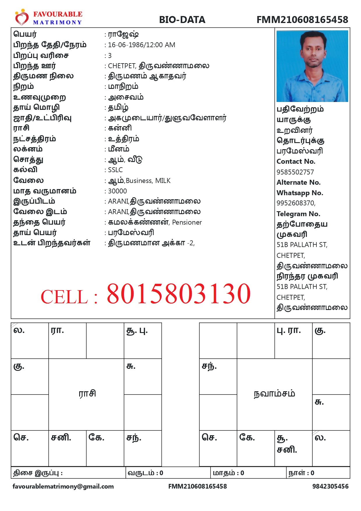 இணையதள திருமண தகவல் மையம். குறைந்த செலவில் நிறைந்த பயன். திருமணம் முடியும் வரை ஒரு முறை கட்டணம். வரன் முடிந்தவுடன் எங்களுக்கு தெரியபடுத்தவும்.